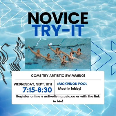 The UVic Artistic Swimming Club is for swimmers who are interested in representing UVic in the sport of artistic swimming (formally synchronized swimming) at Canadian Universities Artistic Swimming League (CUASL) competitions. Artistic swimming is a hybrid form of swimming, dance, and gymnastics consisting of swimmers (in solos, duets, trios, combos or teams) performing a routine of elaborate moves in the water, accompanied by music. This sport requires water skills, strength, endurance, flexibility, grace, artistry, precise timing and the desire to work with a team and have fun. There are teams available for those with national level experience and also for those who are brand new to the sport.